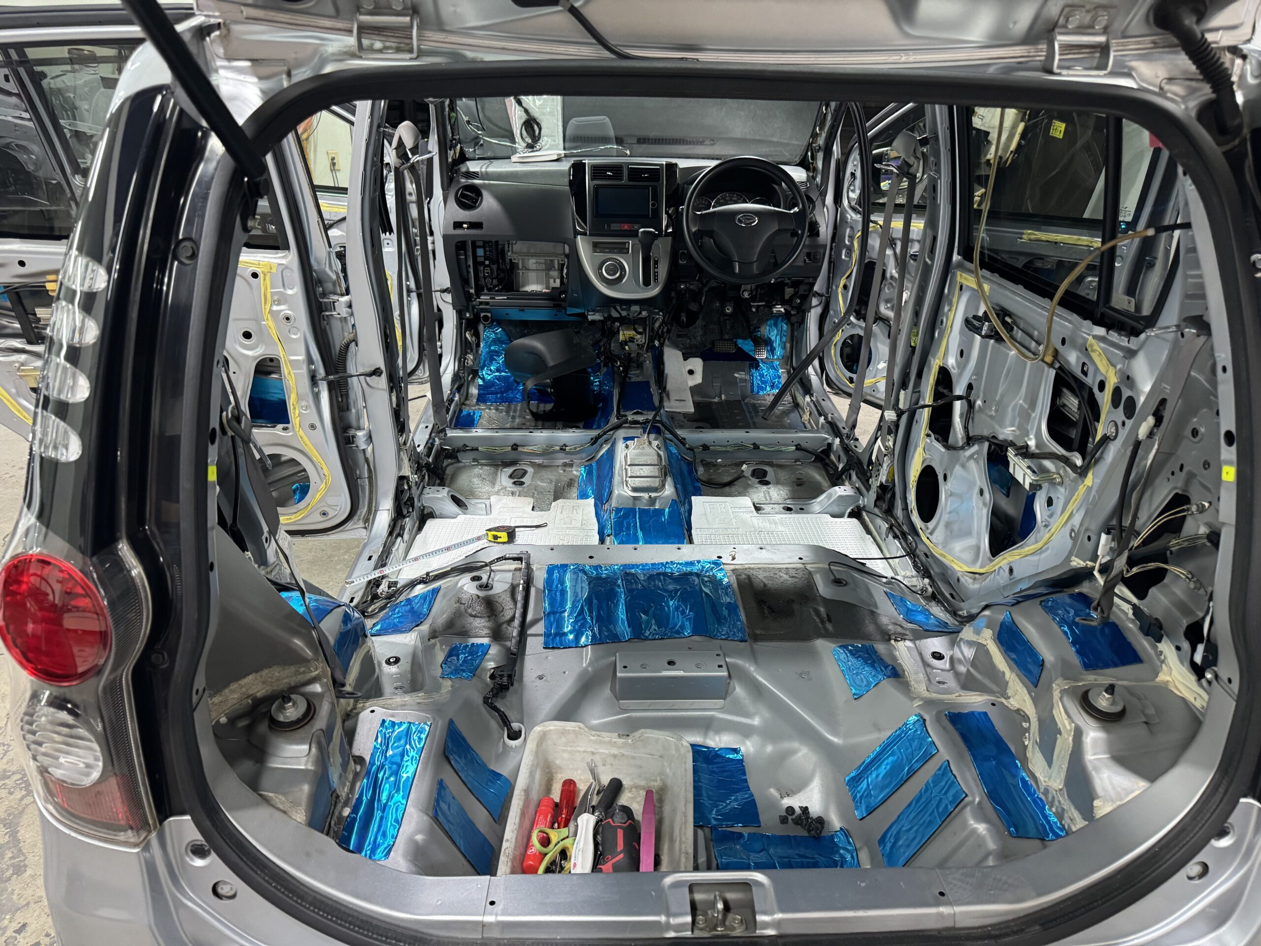 作業内容としてはデットニング、スピーカー、ツイーター、サブウーファ、アンプ、ディスプレイオーディオ化、ついでにフリップダウン取付。